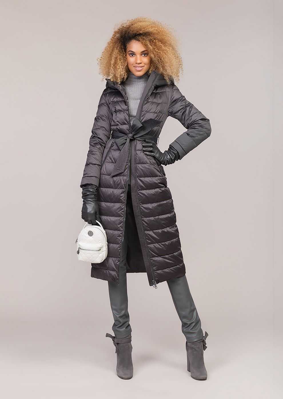 - Длинные. Для холодной погоды рекомендуются куртки-пальто с пуховым наполнителем в дополнение к меховой подстежке. Для теплой погоды — парки-плащи с характерными элементами: капюшон, застежка на молнию, пояс-кулиска.