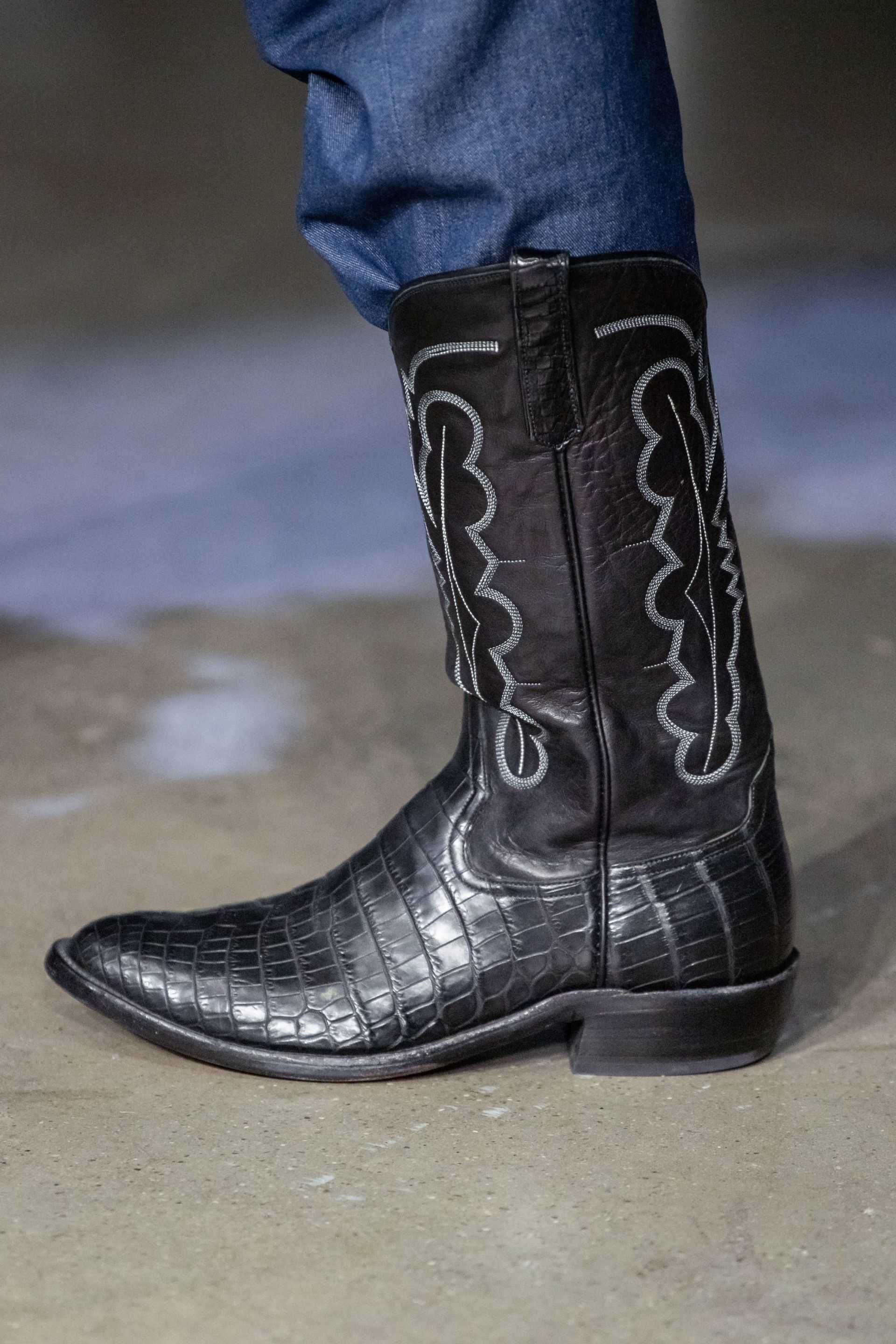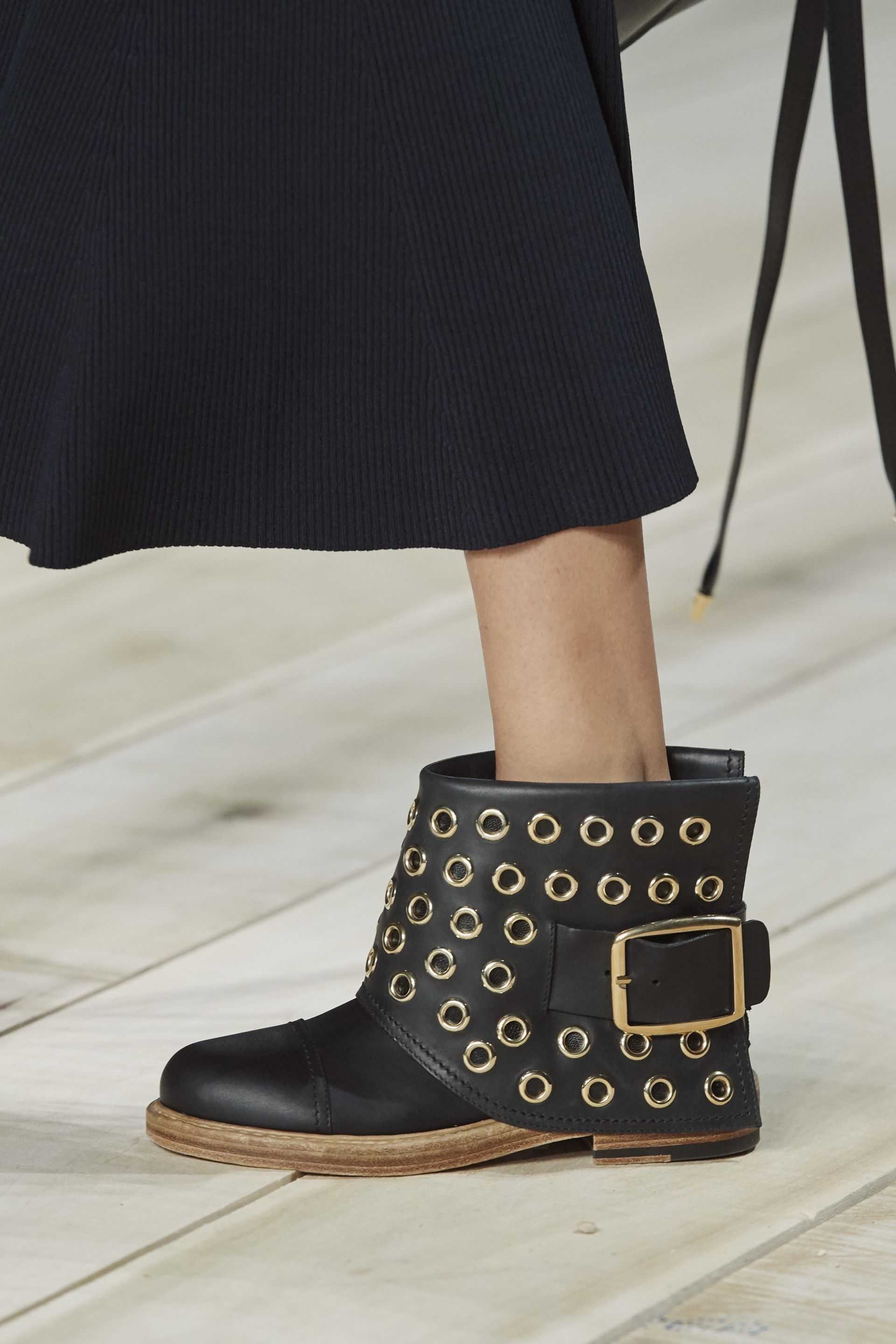 Грубые кожаные ботинки – тренд, который незаметно перешел из прошлого сезона в весенне-летний. Для консерваторов ставшая классикой грубая обувь в стиле гранж – настоящий подарок. Такие ботинки идеально сочетаются с легкими романтичными платьями, кожаными куртками и нежными блузами. В этом сезоне в тренде лаконичные модели, ботинки в военном стиле, как у Christian Dior, и казаки с принтом, как из показа Prabal Gurung. Интересный вариант предложил бренд Alexander McQueen на показе весна-лето 2020: ботинки с пряжкой вокруг щиколотки. В этом сезоне дизайнеры советуют присмотреться к обуви со множеством металлических заклепок, кнопок, пряжек, которые служат декоративным украшением.