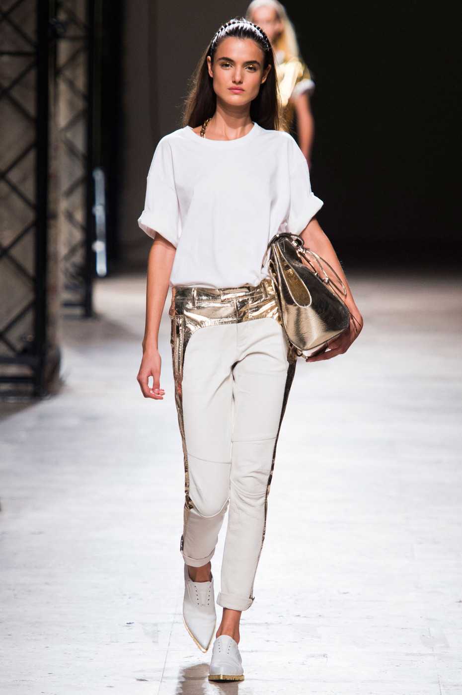 Деним – отличный вариант для тех девушек, которые не мыслят свой образ без пары удобных и стильных джинсов или юбок. В новом сезоне деним предстал в необычном цветовом варианте – пожеванном, будто изъеденном химикатами. Именно такие джинсы носили модницы 80-х годов, только для получения такого оригинального цвета им приходилось просиживать часы у кастрюли, проваривая в буквальном смысле свои любимые джинсы.