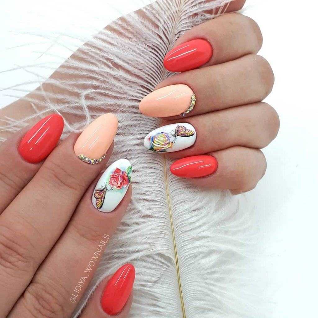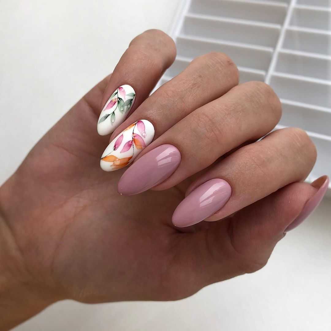 Если подобрать цветочный оттенок, то можно добавить немного яркого принта, чтобы ногти выглядели по-настоящему привлекательно.