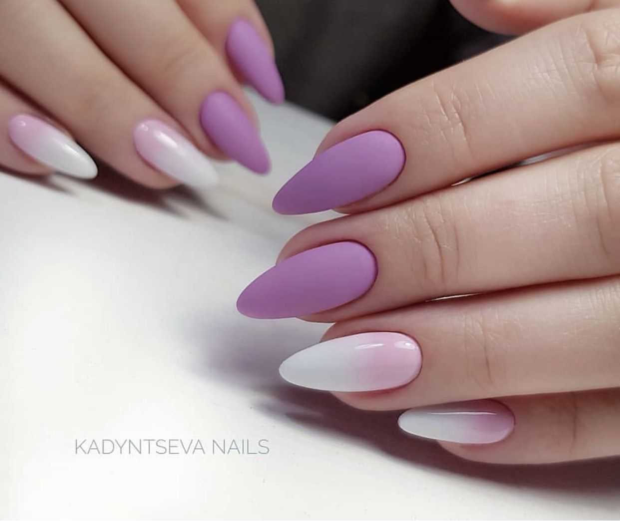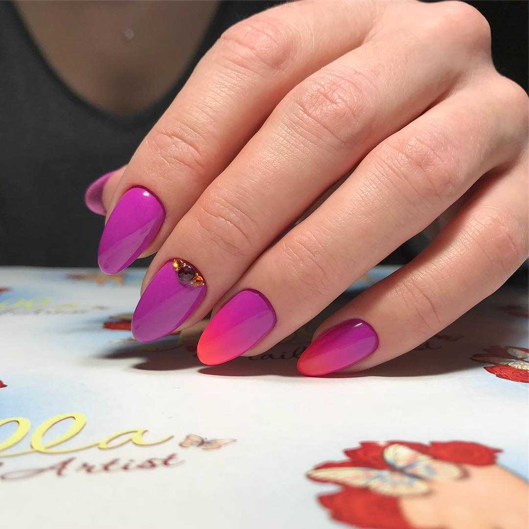В 2020-2021 году трендовым считается использование градации цветов от темного к светлому и наоборот. Она бывает линейной или абстрактной, по всей длине ногтя или только на небольшом участке. Самым же популярным ее видом считается эффект омбре.