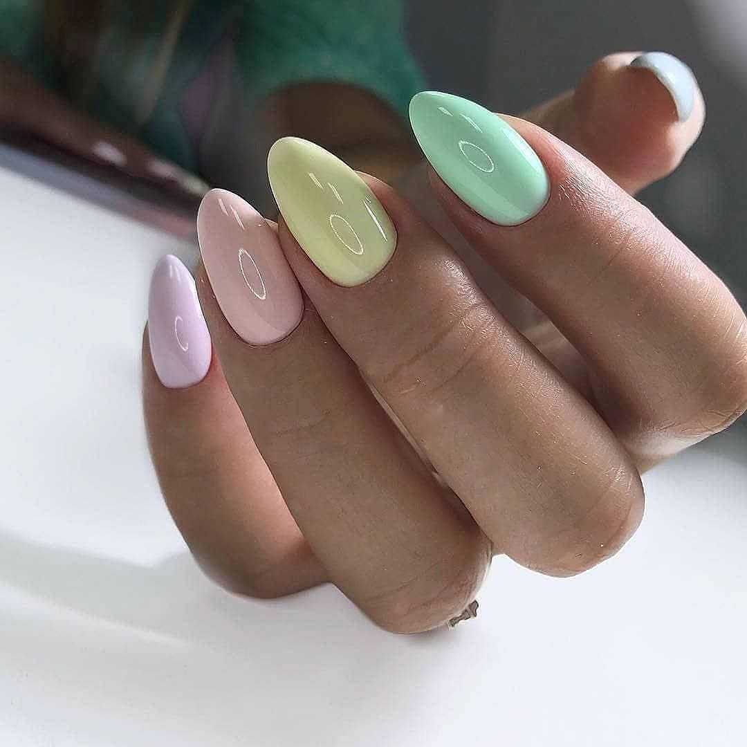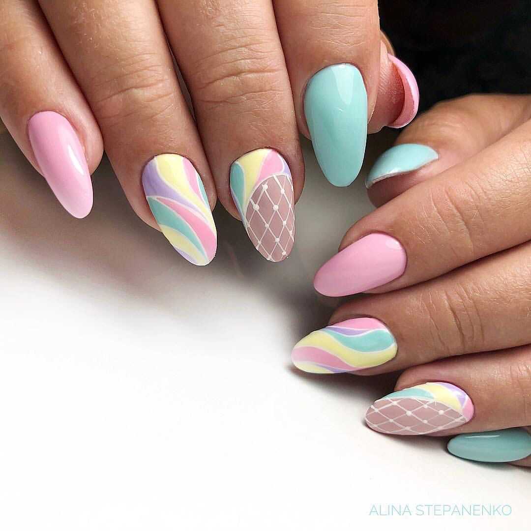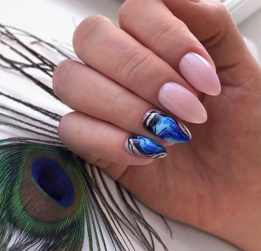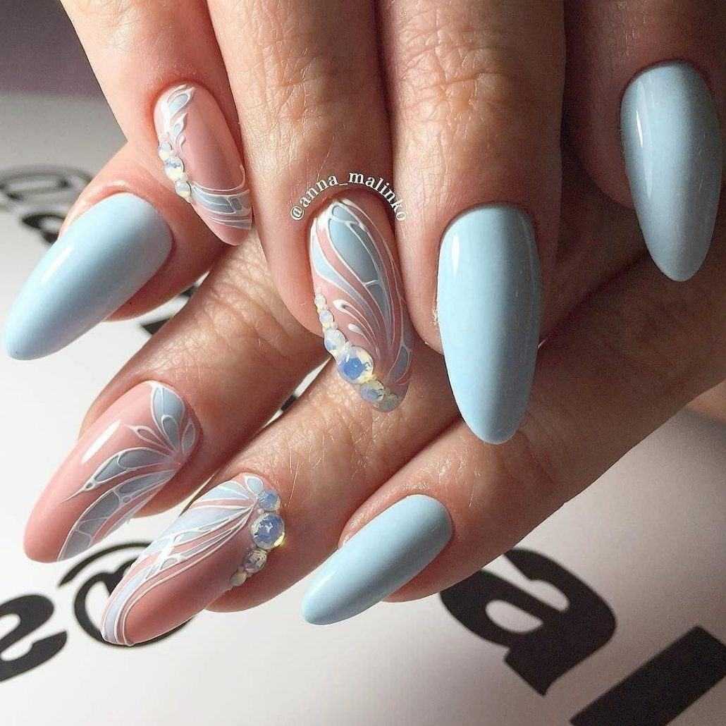- Миндалевидный дизайн ногтей. Этот тренд станет абсолютной новинкой для маникюра будущего сезона. Подобное оформление допускает разнообразие цветовых решений. Например, — коралловый, синий кобальт, аквамарин, лимонный, небесный голубой и многие другие оттенки цвета для ногтевой пластины станут наиболее популярными весной 2020.