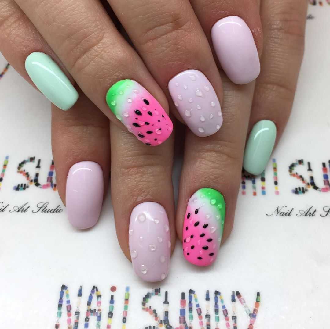 Особенно востребована техника с узорами в летние периоды, перед новогодними праздниками и другими событиями, где важно передать настроение и эмоции. Летом на ноготках модниц традиционно красуются узоры с фруктами, флористикой