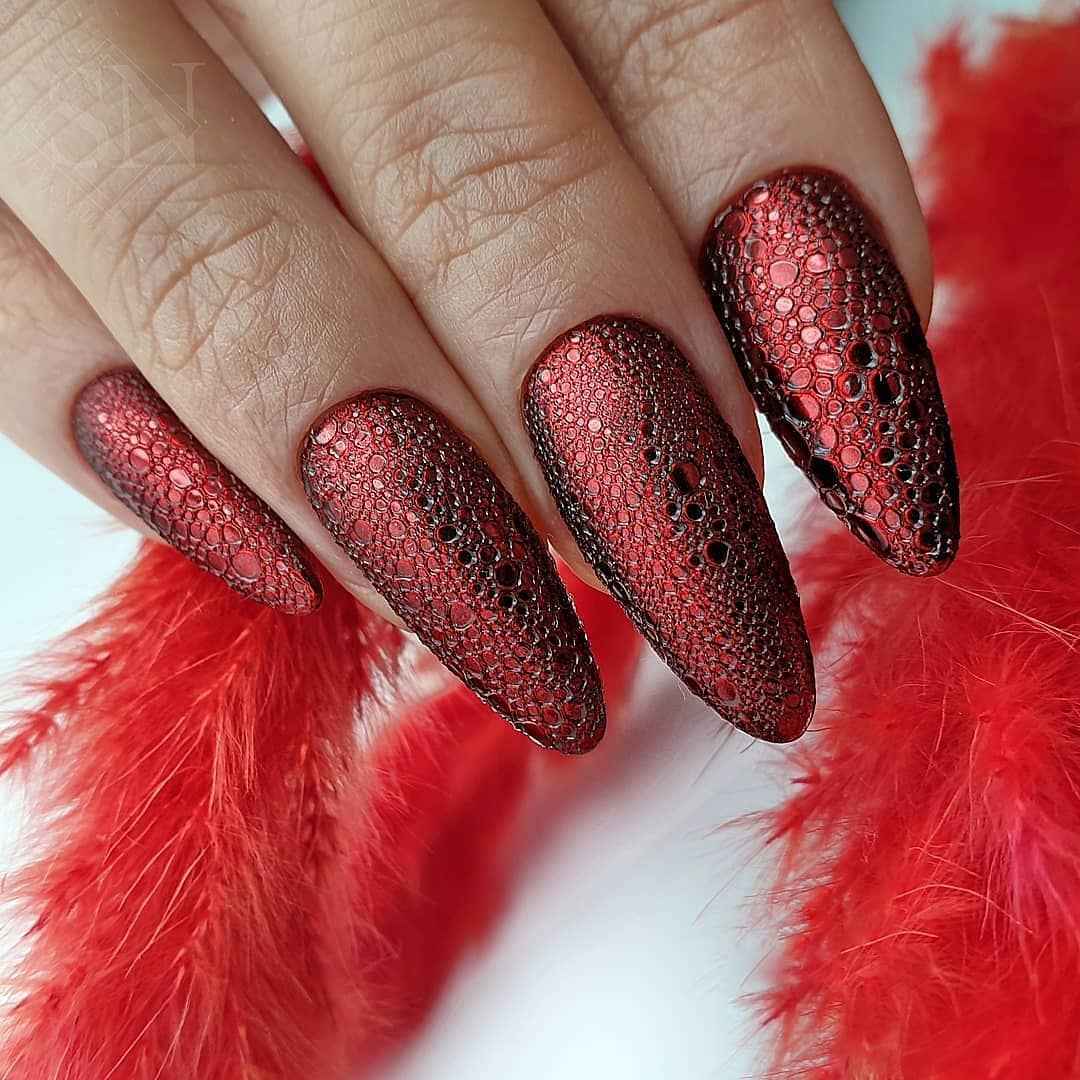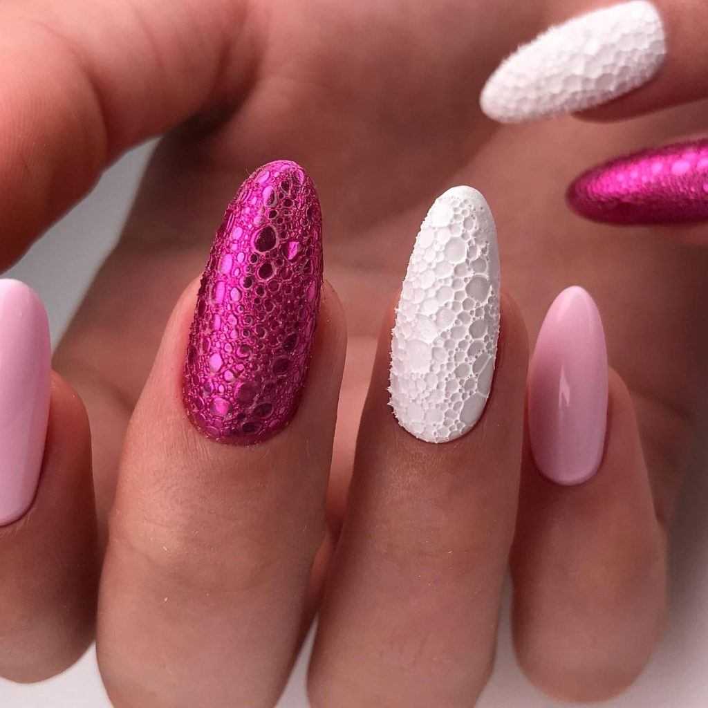 Пенный маникюр — относительно новый тренд в нейл-арте. Его называют по-разному: кожа змеи или крокодила, лава, пузырьки, кратеры… Но вне зависимости от названия, такой дизайн выглядит потрясающе и завораживающе. Предлагаем вам убедиться в этом: