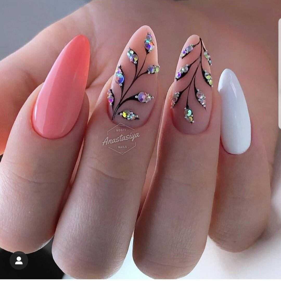 - Крутой маникюр на короткие ногти с камнями. Применение декоративных элементов в маникюре 2020 года станет настоящим трендом. Камни и стразы занимают лидирующие позиции в нейл-арте.