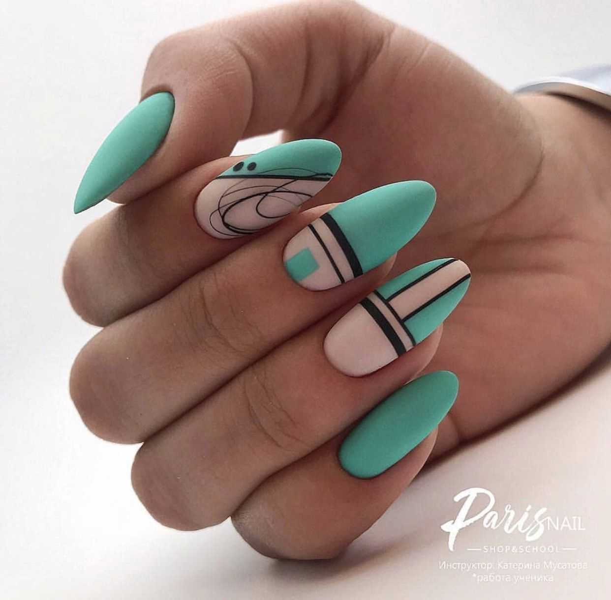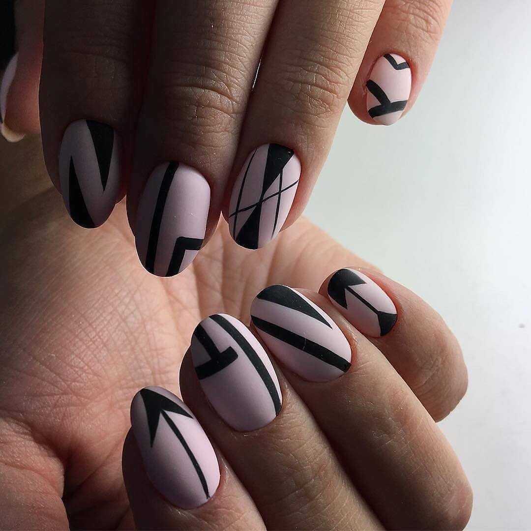 Нужно отметить, что матовое, особенно нюдовое покрытие, очень эффектно смотрится с популярным дизайном ногтей 2020 геометрией.