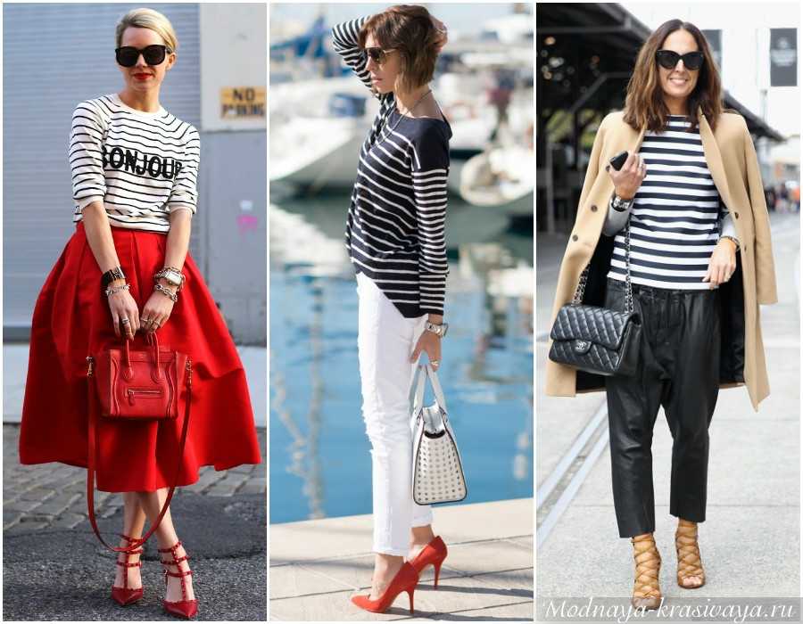 Такая вещь – визитная карточка морского гардероба. К тому же, она легко сочетается с голубыми и темными джинсами, без которых обходится редкая современная женщина. А затем начинайте подбирать базу. Это: