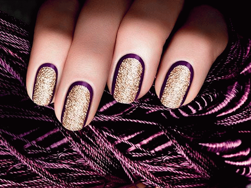 - Глубокий фиолетовый – веселый и яркий цвет, который особенно выделяется осенью, эффектно смотрится как на коротких, так и на длинных ногтях.