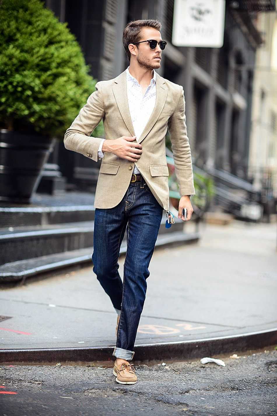 В моде не только классические вариации обычного костюма, но его более непринуждённые аналогии. Современные тенденции мужской моды позволяют носить брючный костюм не только в офис или на работу, но ежедневно. Допустим, уместно надеть пиджак из твида и джинсы и отправится на прогулку.