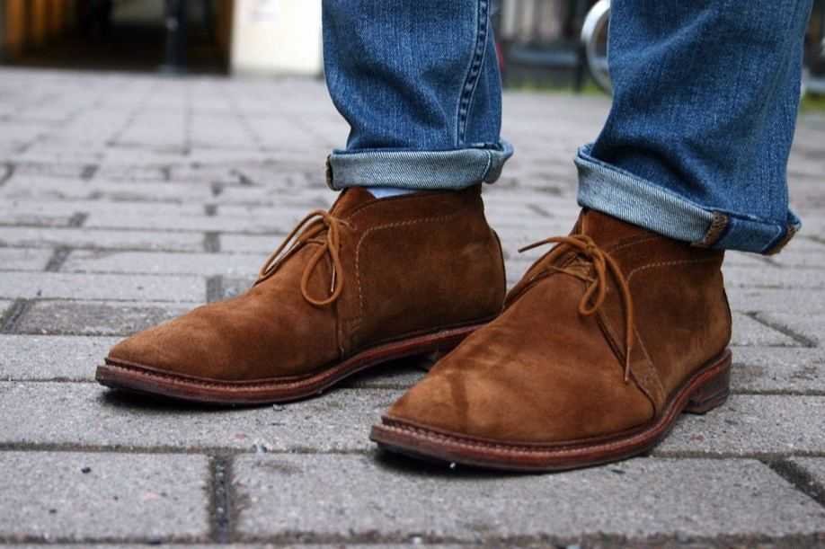1. Хитом 2020 года станет элегантная обувь, изготовленная из натуральной замши, отлично сочетающаяся с одеждой любого стиля. Замша одинаково хорошо подходит для изготовления разных видов мужской обуви: туфель, кроссовок, ботинок, лоферов и мокасин. В интересующем нас году в моду снова войдут дезерты – особый вид замшевых ботинок, имеющих резиновую или кожаную подошву и 2-3 пары отверстий для шнуровки. Будучи необыкновенно стильными, практичные и комфортные дезерты подходят мужчинам, предпочитающим свободный стиль. Наиболее популярными будут дезерты, окрашенные в естественные цвета (коричневый, бежевый и рыжий).