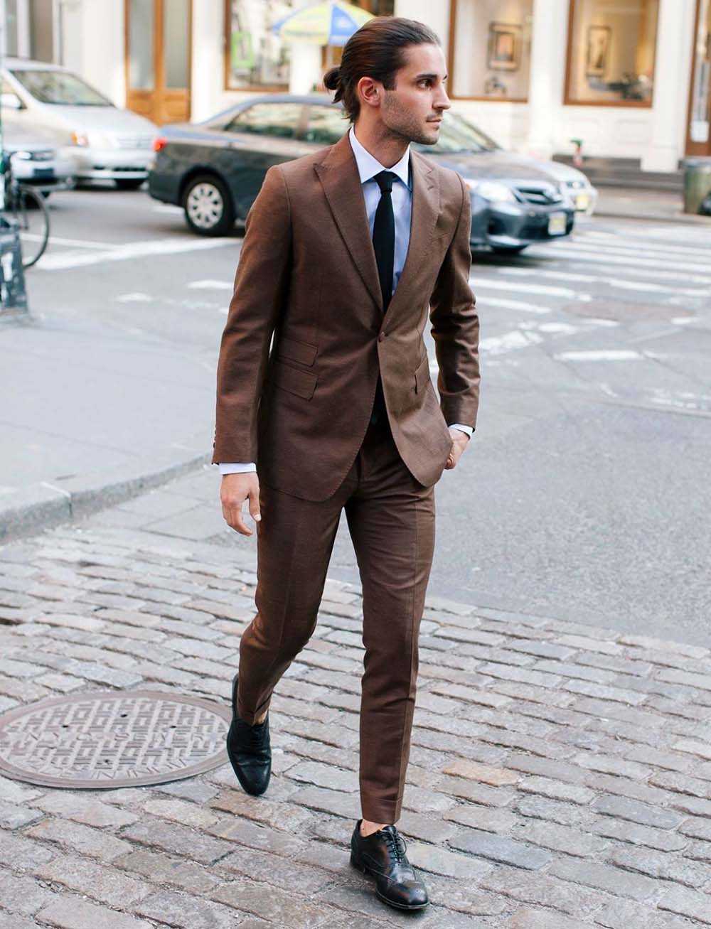 - Если мужчина хочет похвастаться отличным вкусом, ему следует отдавать предпочтение осенним и зимним костюмам карамельных, песочных и бежевых тонов.