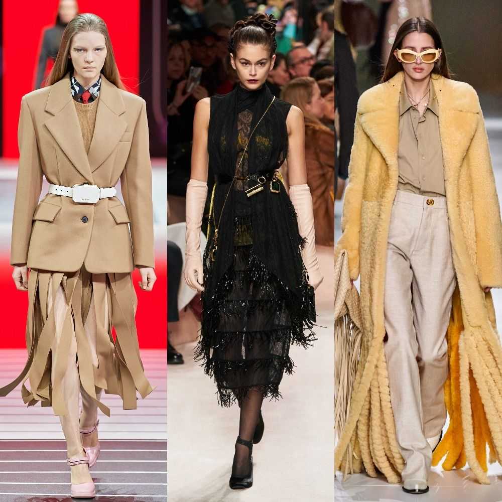 В сезоне осень-зима 2020 дизайнеры выводят бахрому за пределы вечернего женского гардероба и показывают, как органично и стильно она может выглядеть в повседневных образах. Без этой детали, характерной для нарядов в стиле фильмов про бесстрашных ковбоев или романтичного Гэтсби, не обошелся практически ни один показ миланской Недели моды.