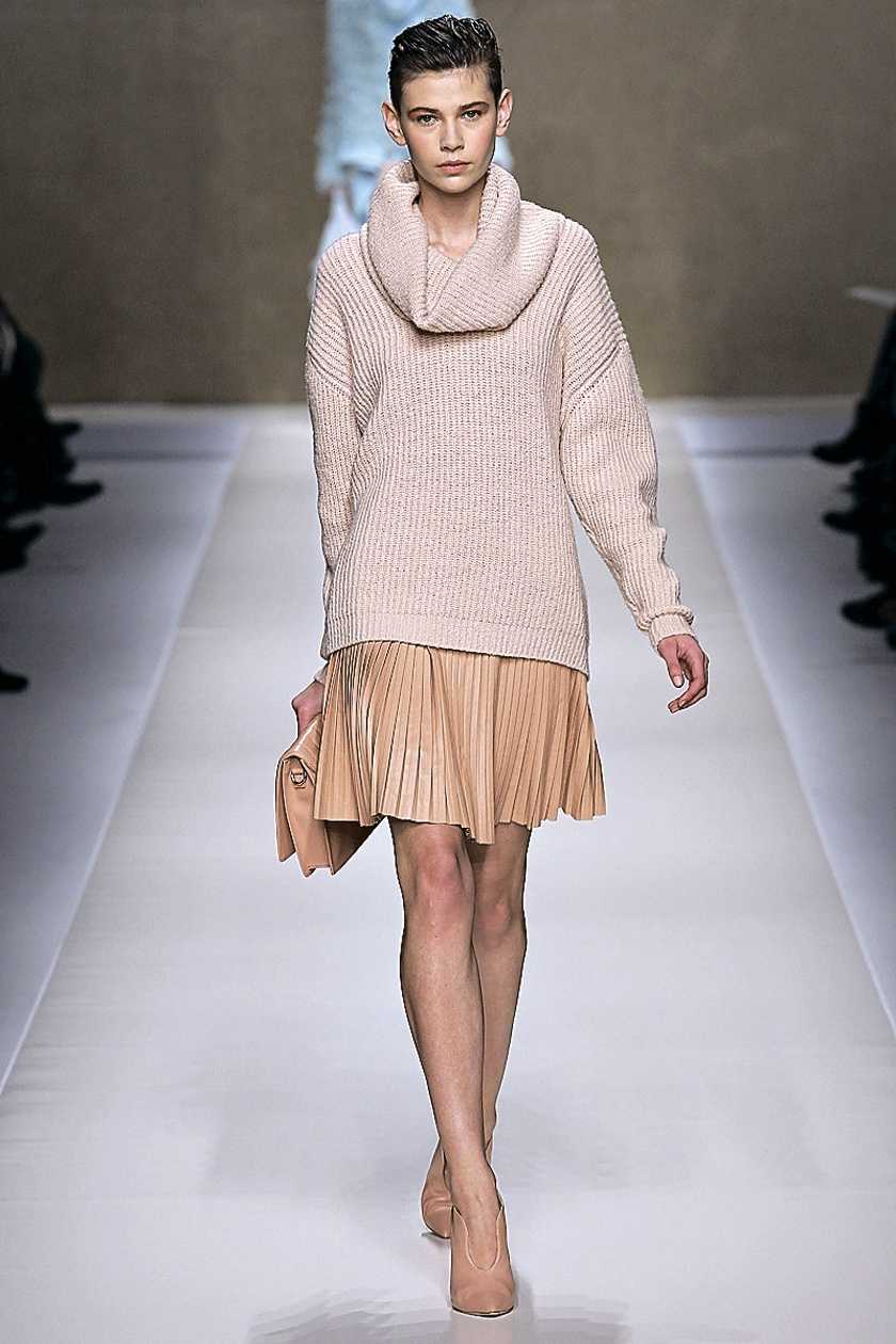 Этот итальянский Дом моды специализируется на образах из меха и кожи, и показ в Милане не стал исключением. Ориентируясь на миллениалов, Карл Лагерфельд не отступает от элегантности и романтизма, классических форм и фасонов. Хитами модного показа стала юбка-карандаш из стеганой кожи, пояс с навесными кошельками-сумочками, эффектное сочетание плиссированной юбки миди с кожаным жакетом. В любом луке присутствует своя изюминка: либо сложный декоративный крой, либо яркий цветовой контраст, либо эффектный, притягивающий взгляд аксессуар.