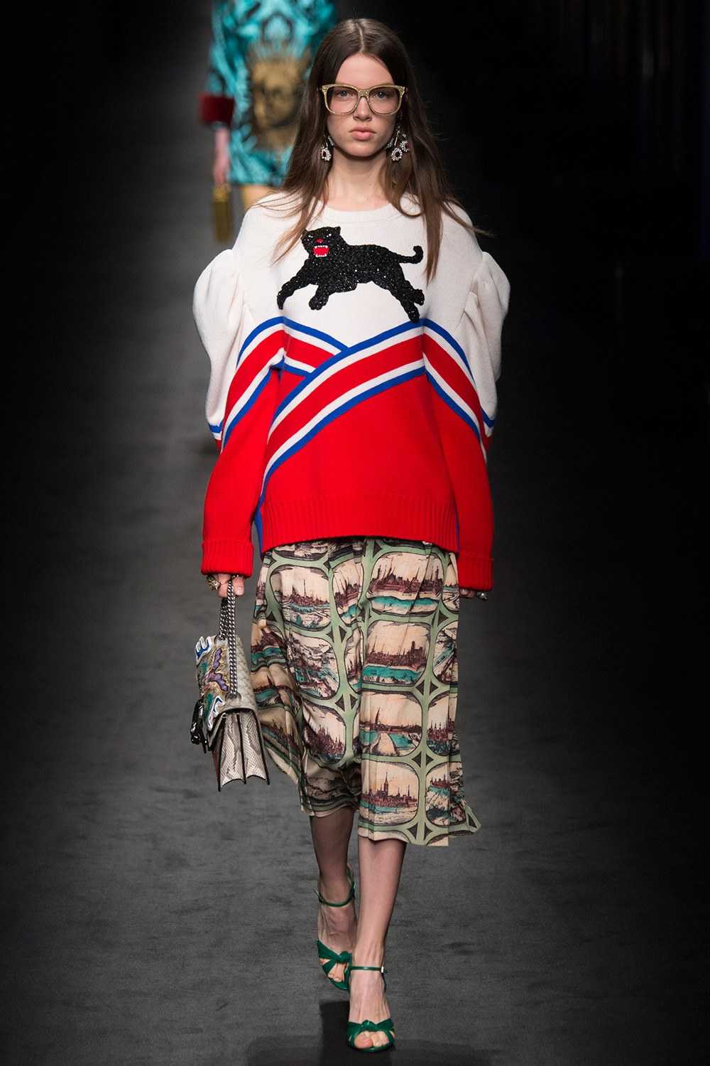 Коллекция Гуччи – это результат сотрудничества креативного директора дома Gucci и спортивного бренда Adidas. Она сочетает классику и элементы стрит-стайла. Тут оказались и наряды со светоотражающими элементами, и модные сумки, и обилие заклепок, и неожиданные сочетания тканей.