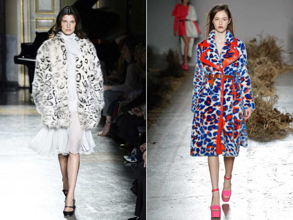В коллекциях дизайнеров были показаны как нежные, так и весьма взрывные по цвету красные, зеленые, голубые, желтые, розовые, малиновые, марсаловые, бордовые шубы и полушубки, а также весьма эксцентричные модели в принтированных вариантах, что часто обладают особенным неоновым эффектом.