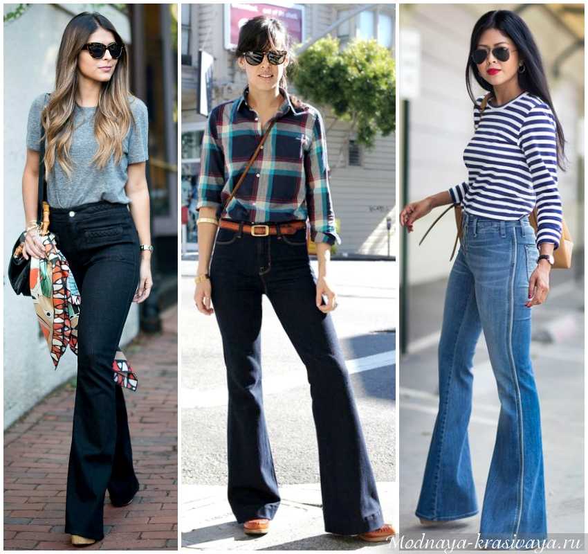 Носите джинсы, брюки и шорты темных цветов (оттенки черного, серого, темно-синего, коричневого, оливково-зеленого) или с вертикальной полоской, зрительно утончающие силуэт. Наиболее удачно смотрятся расклешенные брюки с высокой талией (bootcut, bootleg, flaredenim), мода на которые появилась в 70-х годах. Этот крой балансирует изгибы, удлиняя ноги и создавая более плавную линию силуэта.