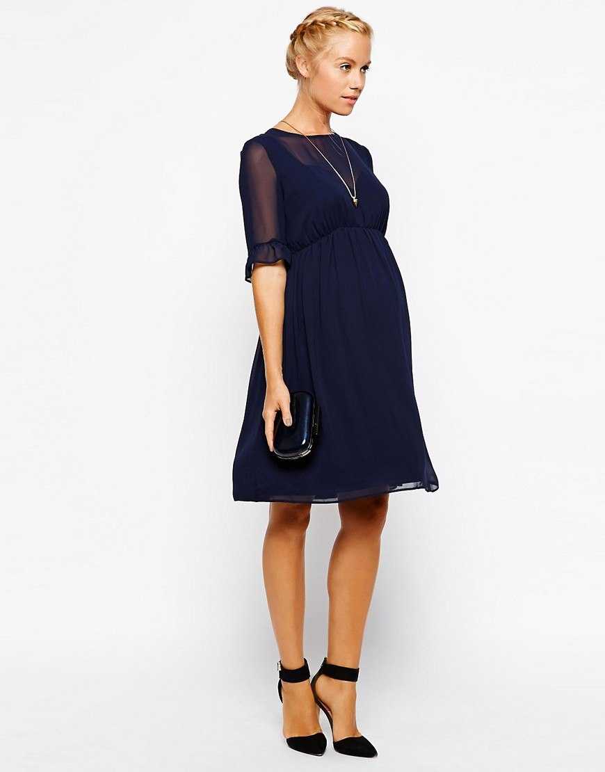 Платье – лучший выбор для будущих мам. Фасон определяется исходя из намерений женщины – подчеркнуть животик или, наоборот скрыть его от посторонних глаз.