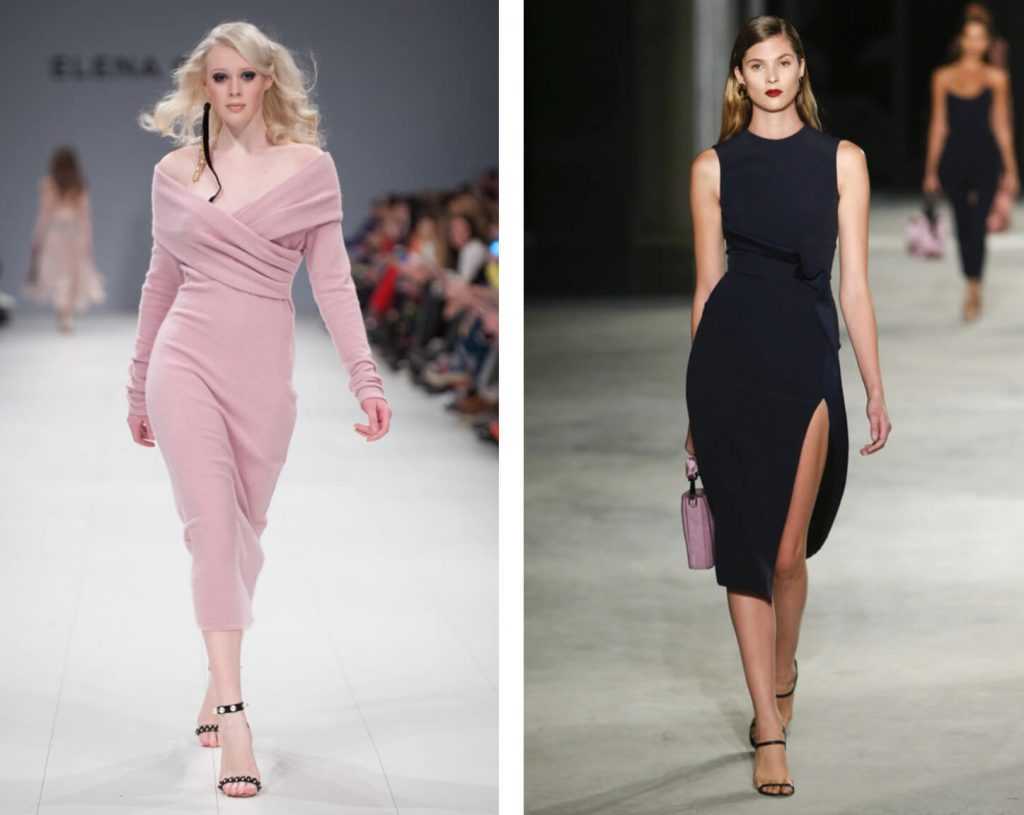 Что дизайнеры любят больше всего? Конечно же оголять своих моделей. Мы не предлагаем вам отказаться от белья, но частично открыть своё тело — неплохая идея. Возьмите на вооружение платья с относительно глубоким декольте, соблазнительным разрезом на ноге, открытой спиной или плечами. Отличным вариантом станут платья с декольте-упряжкой. Они невероятно изящны и визуально сужают плечи делая образ более женственным.