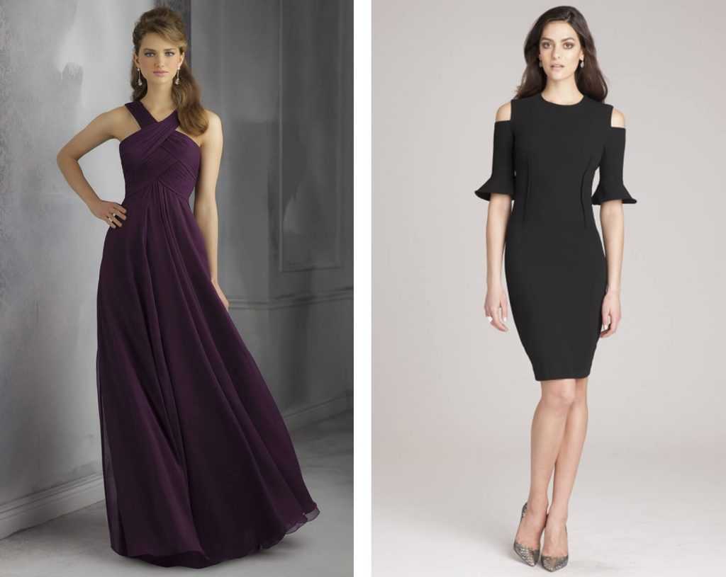 Обладательницам красивых ног можно выбирать варианты, длина которых на ладонь выше колена. При высоком росте подойдут длинные платья.