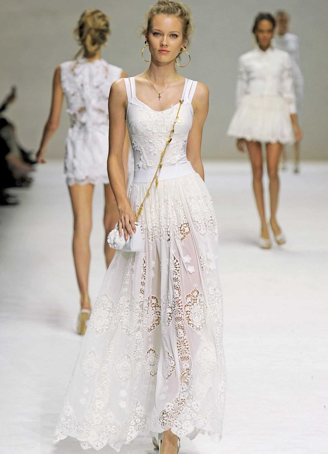 Белый цвет – воплощение хрупкой и застенчивой женской натуры. В кружевном исполнении он будет выглядеть еще элегантнее и женственнее. Белые ажурные наряды уже несколько сезонов не сходят с подиумов, что говорит о востребованности этой модели.