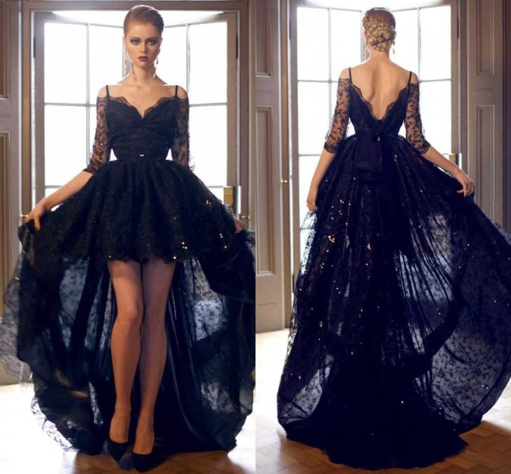 Выпускные платья mullet 2018 декорированы пышными кружевами, оборками, роскошными шлейфами.
