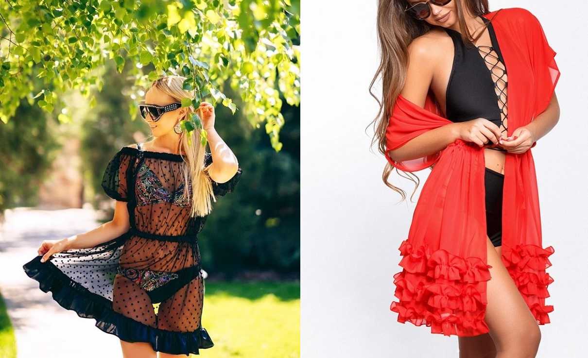 обычное парео или его альтернатива – пляжные халаты, пончо и накидки длиной до щиколоток. Они создаются из полупрозрачных тканей, могут иметь набивку, кисти, бахрому, вышивку и очень красиво покрывают фигуру;