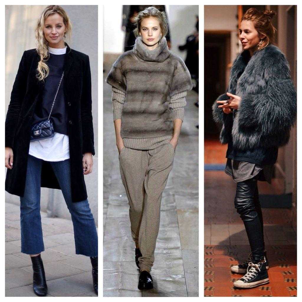 Никто не запрещает для создания по-настоящему модных луков миксовать вещи из разных стилей. А чтобы аутфиты получились динамичными и нескучными, используйте одежду из тканей с разной фактурой. Для примера, шелковое платье + вязаный джемпер.