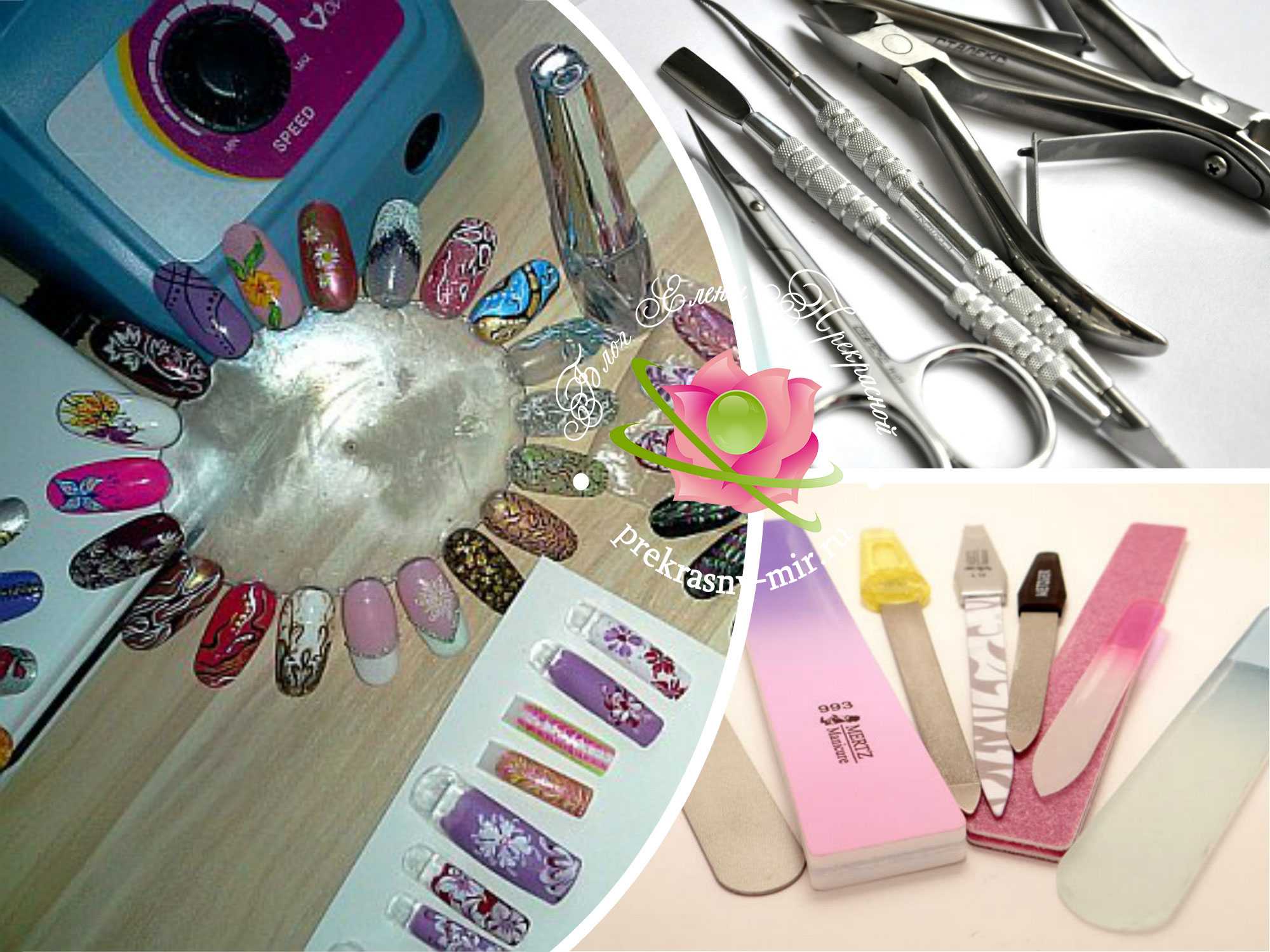 Чтобы ногтевая пластина приобрела базовый цвет, необходимо покрытие – лак, гель-лак, гель. А вот дальше – это уже дело творческое. Но все равно трудно обойтись без таких инструментов и материалов: