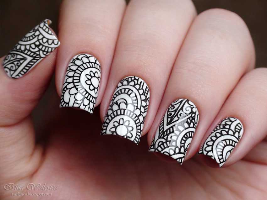 Важно заранее подобрать подходящий рисунок, импровизация испортит весь маникюр. Используйте зигзаги, штрихи, перекрестия, точки, линии