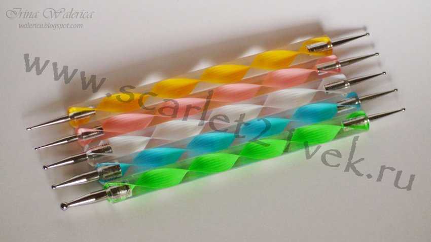 Дотс для маникюра. На фото ниже представлен набор из пяти штук. Подбирайте дотс в зависимости от размера закрашиваемой площади. Для самых мелких участков следует использовать дотс с минимальным размером шарика.