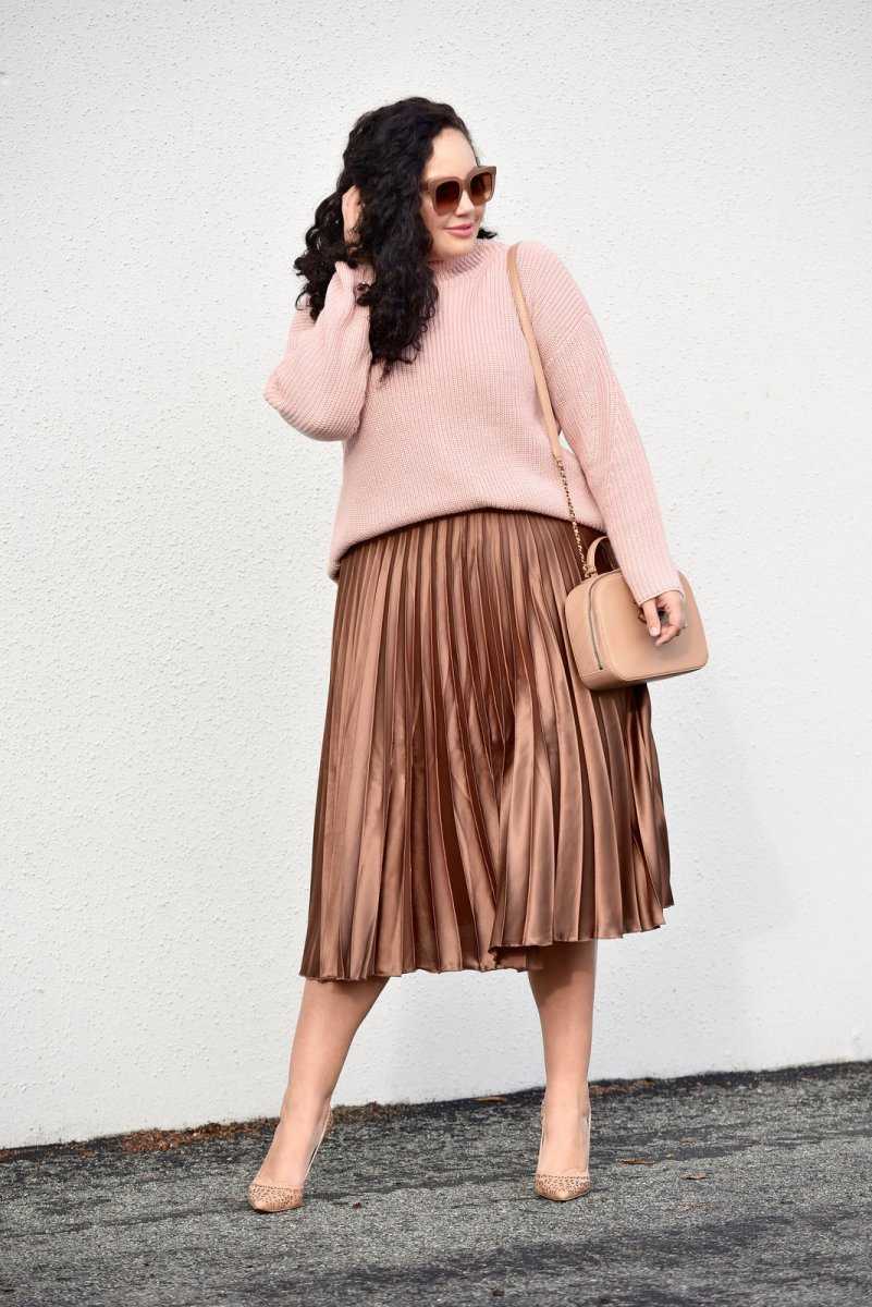 Ниже рассмотрим луки с плиссированной юбкой в сочетании с различными видами верха: блузой, лонгсливом, корп-топом, рубашкой и другими вещами.