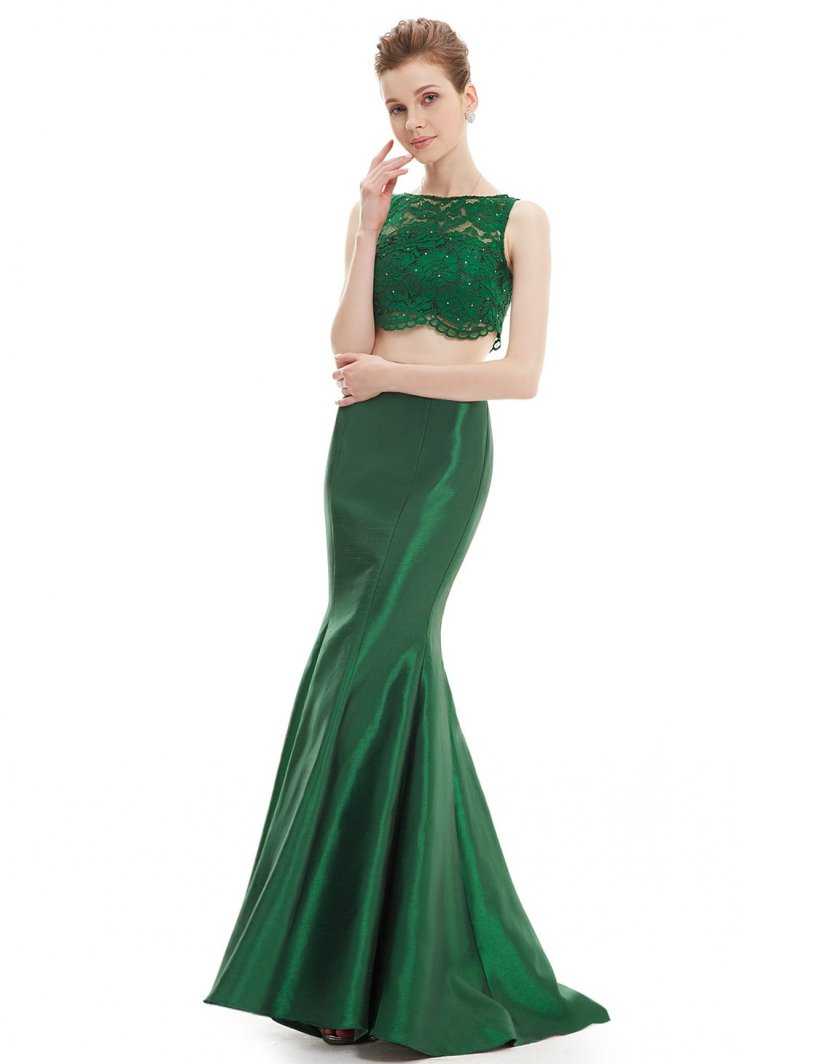 Длинные зеленые юбки выглядят очень женственно и помогают создать романтический образ