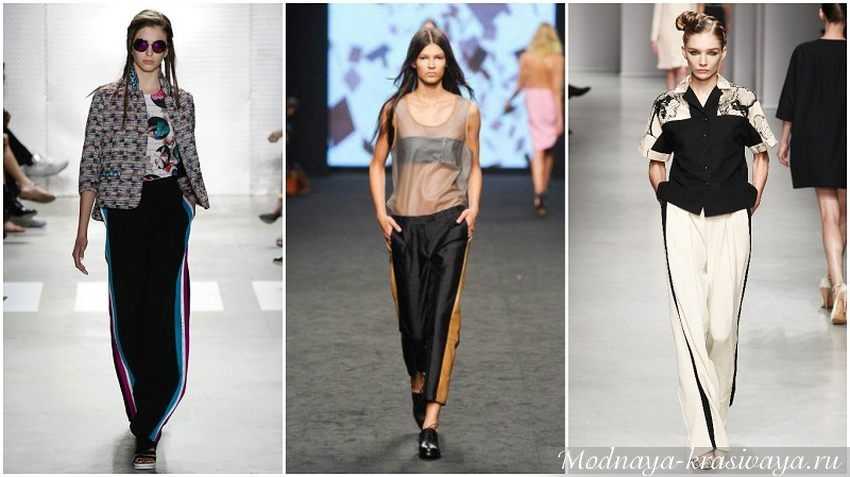 Итак, брюки бывают разной длины, шьются из разных тканей, сами полоски могут быть разной ширины. В этом сезоне лампасы появились даже на джинсах.