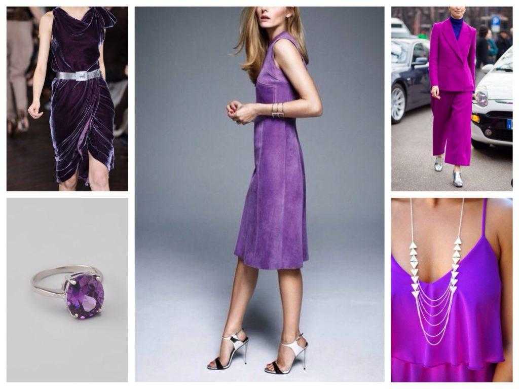 Металлик подходит к холодной гамме оттенков. Серебряная юбка-плиссе или другие предметы одежды этого оттенка, хорошо сочетаются с красными, фиолетовыми, зелеными и синими тонами. Сочетая эти оттенки можно составить отличный вечерний аутфит. Для комплекта выполненного в уличном стиле подойдет сочетание металлика с нейтральным денимом. А объединившись с серым, выйдет деловой вариант. Блестящая блуза из атласа освежит строгий костюм, а серебристые туфли или шарфик-скинни придадут ему шикарный вид.