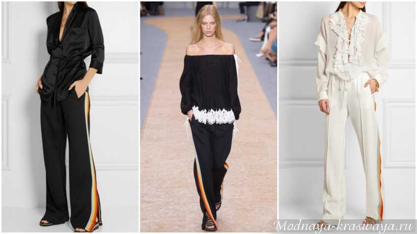 Самые отчаянные и смелые модницы смогут сочетать лампасы с кружевными топами, корсетами и кедами на платформе.