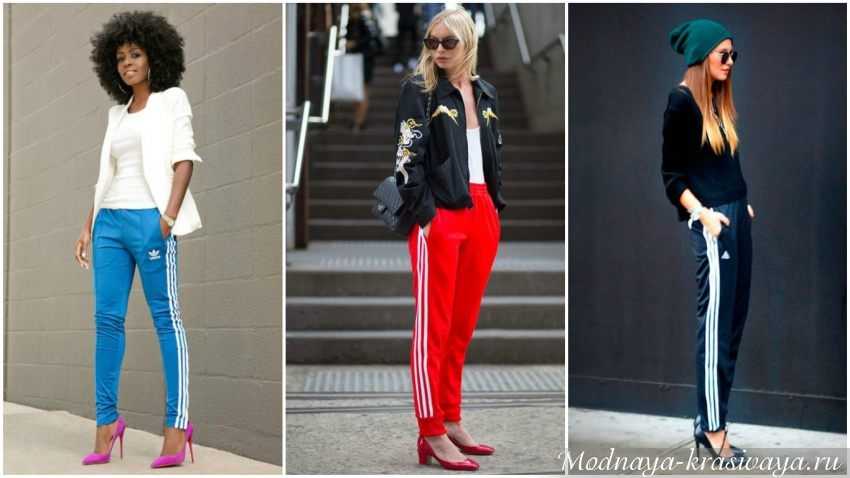Если вы предпочитаете стиль smart casual, к брюкам с лампасами подберите свободный свитер или легкий джемпер. Другой вариант – облегающие модели с кожаной курткой и блузой.