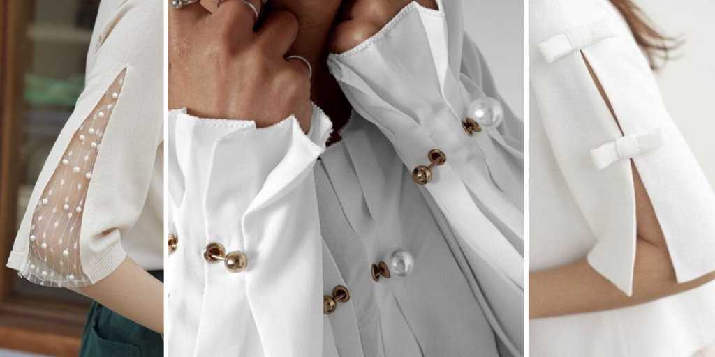 Сначала нужно поговорить о рукавах блуз. Они могут полностью отсутствовать, быть длинными или короткими. Классический вариант – это модели с длинными рукавами, закрывающими запястье. Рукава могут быть расклешенными, узкими или пышными.
