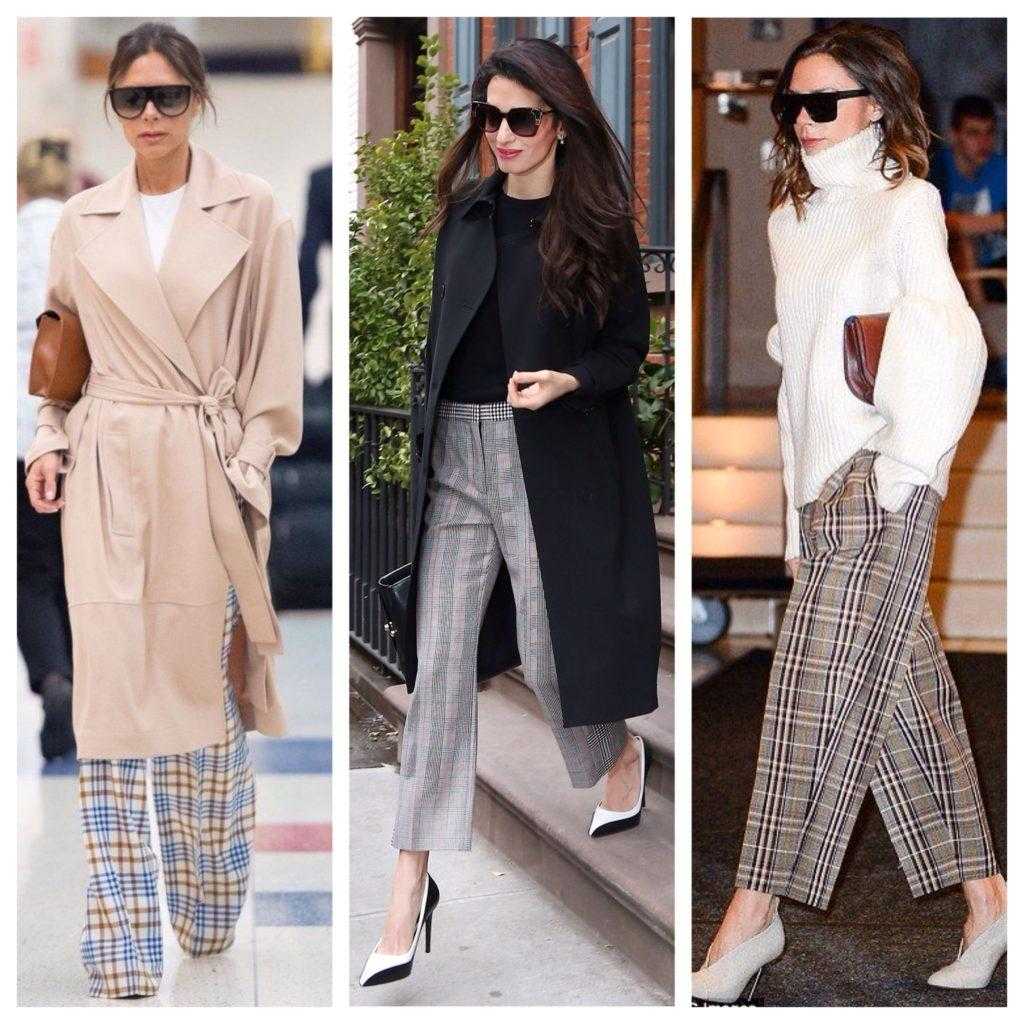Существует несколько видов клетки. Традиционный шотландский принт — тартан; французский — виши; клетка Burberry, название которой дал одноименный английский бренд; гусиная лапка. Зимой и осенью предпочтительно носить брюки из костюмных тканей, джерси, трикотажа, драпа, твида. Плотные клетчатые брюки хорошо смотрятся как с нежными легкими блузками, так и с вязаными свитерами. Наденьте поверх ансамбля пальто — и стильный образ готов.