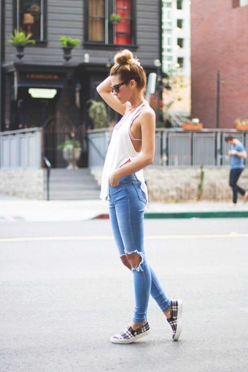Решая, с чем носить рваные летние джинсы, можно в полной мере проявить свою фантазии: