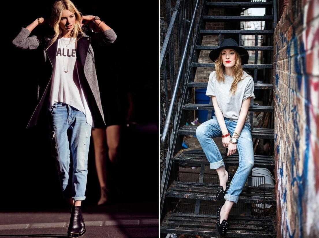 Прекрасный выбор — джинсы бойфренды. Фасоном модные брюки из денима напоминают мужские, и, помимо всего прочего, обладают небрежной усталостью ношенных потертых джинс.