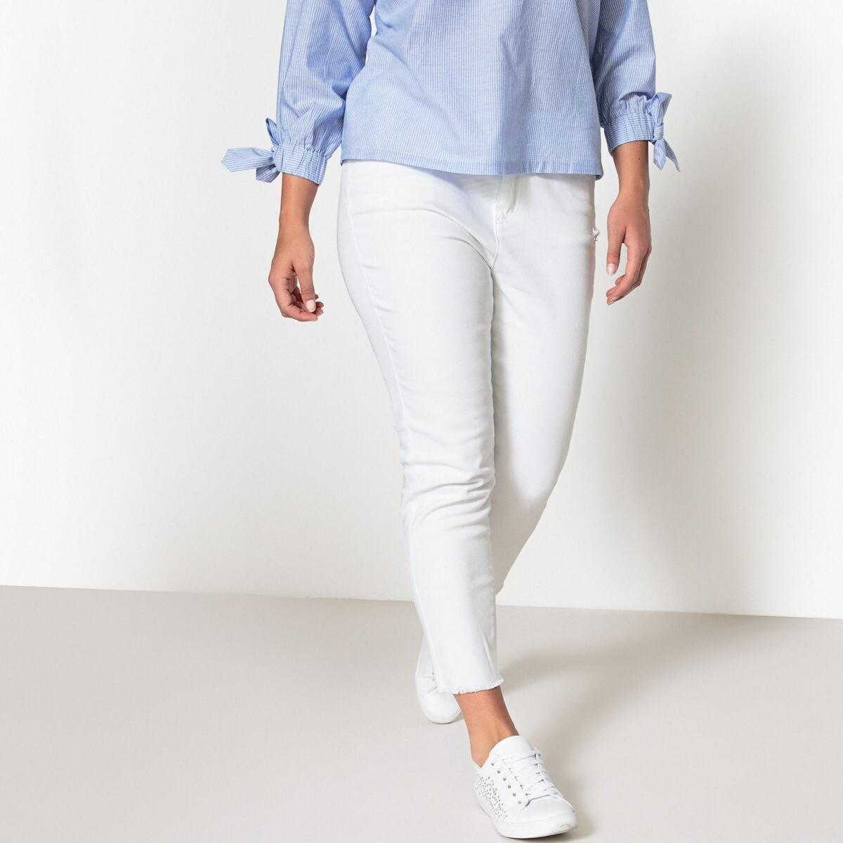 - Белые рваные джинсы – универсальный вариант, к которому подойдут верх и обувь любых оттенков.