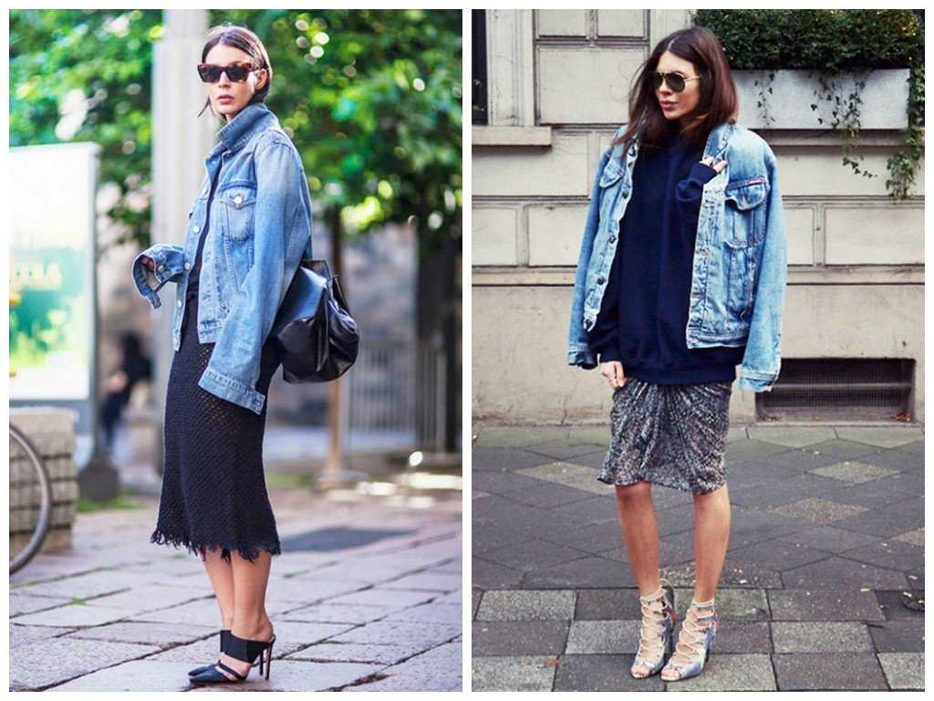 В тренде снова плиссированные миди-юбки, которые в свою очередь, отлично сочетаются с джинсовыми куртками. С кедами — на прогулку или шопинг, с босоножками на каблуке — на свидание. Джинсовая или вельветовая юбка-карандаш — отличный вариант на раннюю осень или прохладный летний вечер. Дерзкое мини лучше сочетать с джинсовой курткой оверсайз и кроссовками.
