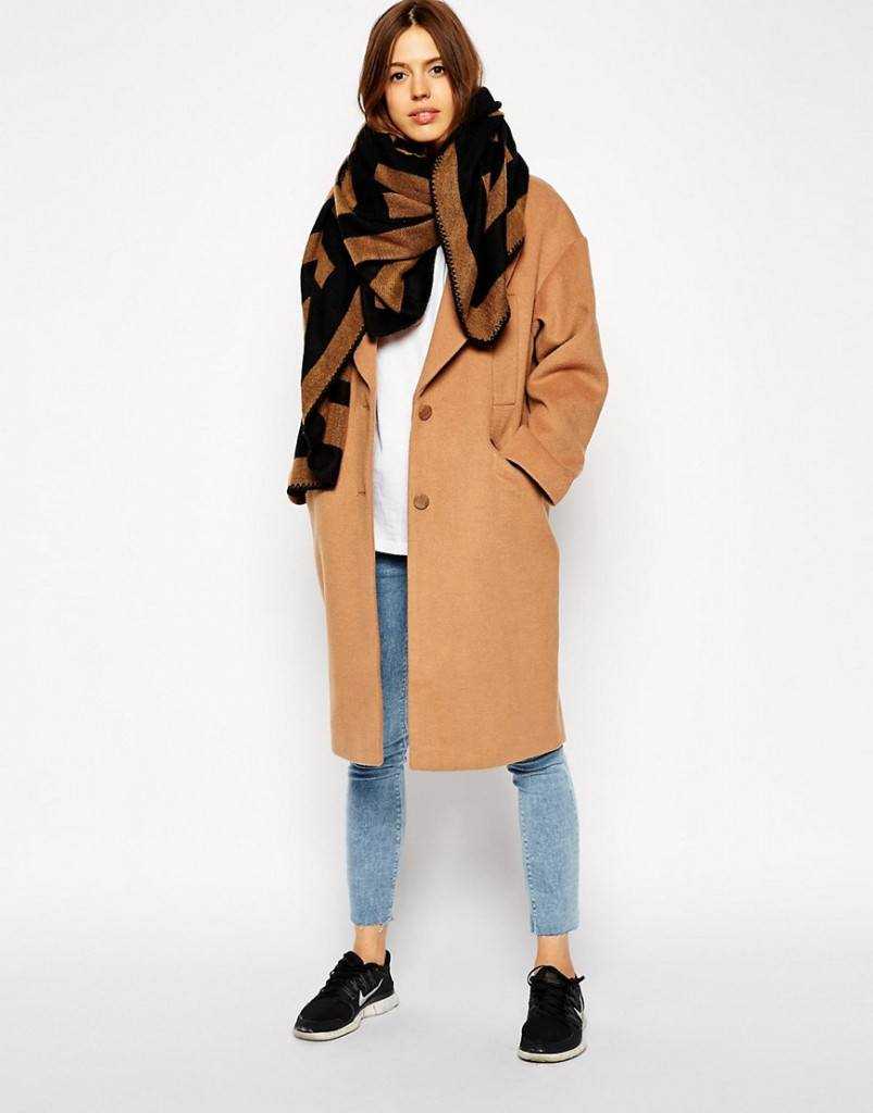 Главное правило сочетания одежды с пальто оверсайз – она должна быть облегающей, особенно, это касается брюк и юбок. Юбка-карандаш, узкие легинсы, короткие шорты, обтягивающие зауженные джинсы, прямые узкие брюки – это весьма подходящая к такому пальто одежда. А вот, джинсов-бойфрендов, широких юбок и расклешенных или широких брюк лучше избегать. Если вы отдаете предпочтение шортам с колготками или юбкам, следите за тем, чтобы они были короче, чем такое пальто.