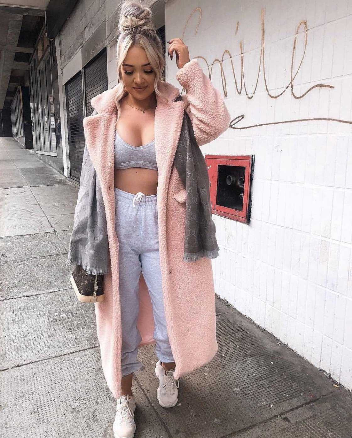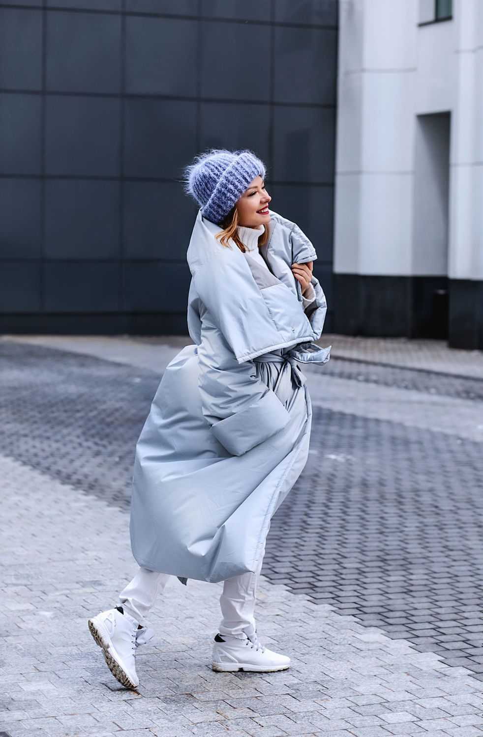 Оверсайз отлично смотрится с любой обувью на плоском ходу, объемными шарфами — всем тем, что дает комфорт и удобство при использовании.