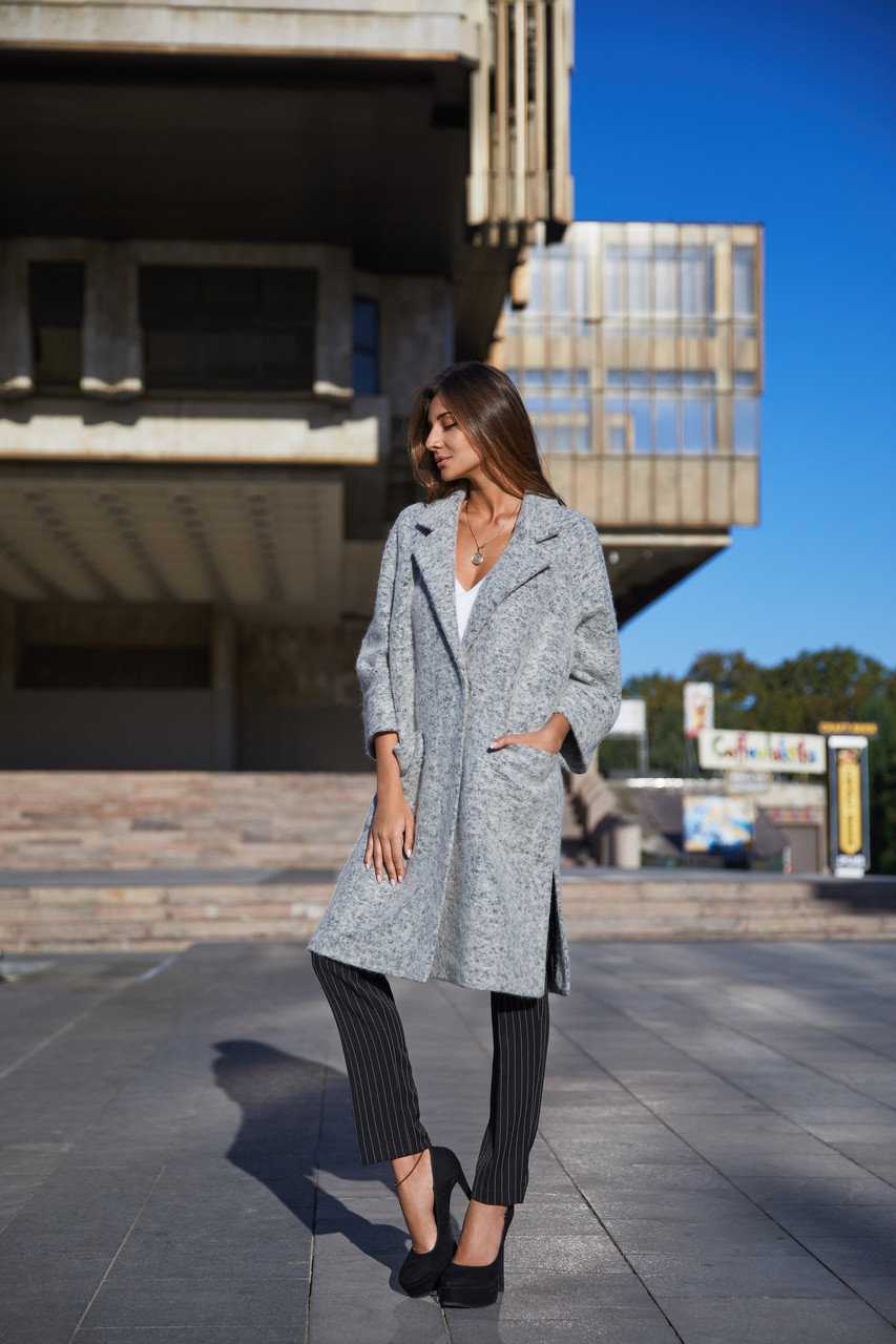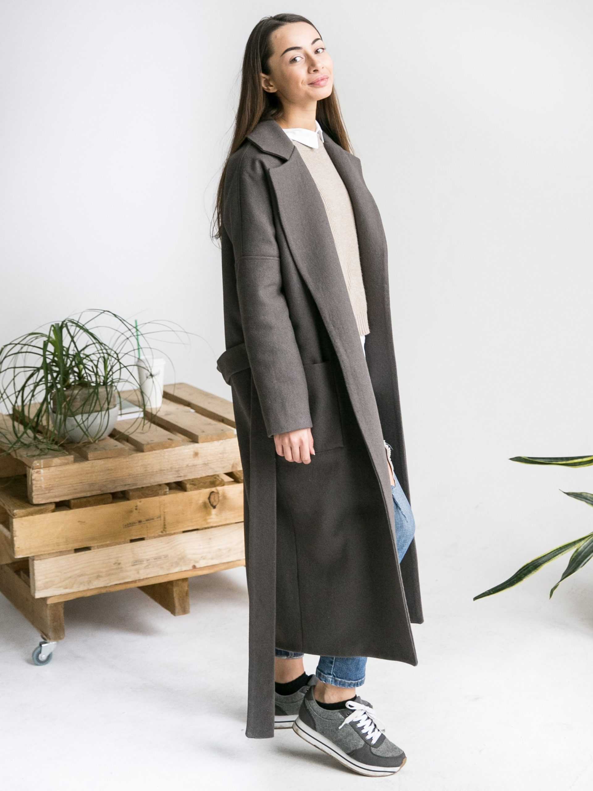 Кстати, в отличие от многих других моделей, пальто оверсайз носят с обувью любых моделей. Одежда отлично сочетается с ботильонами на каблуках, сапогами-чулками, казаками, луноходами и даже валенками. Поэтому, выбору обуви мы не уделим много внимания.