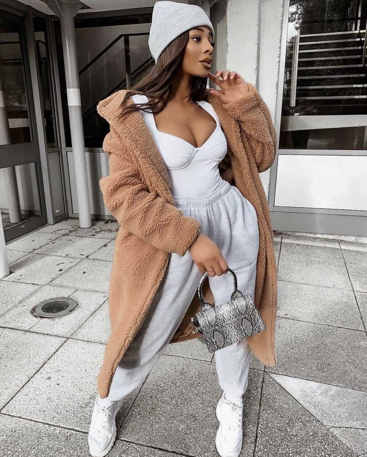 Вещи из гардероба, которые вы совмещаете с пальто, должны быть короче его. Платье и юбка не должны вылезать из-под верхнего предмета одежды, нарушая воздушность и многослойность. Это, к тому же, нарушает всю органичность стилевого образа, созданного за счет силуэта широкого пальто. Можно сочетать оверсайз с другим пальто и даже дубленкой – однако это не так просто, и помните, что вещи должны сочетаться не только фасоном, но и цветом.