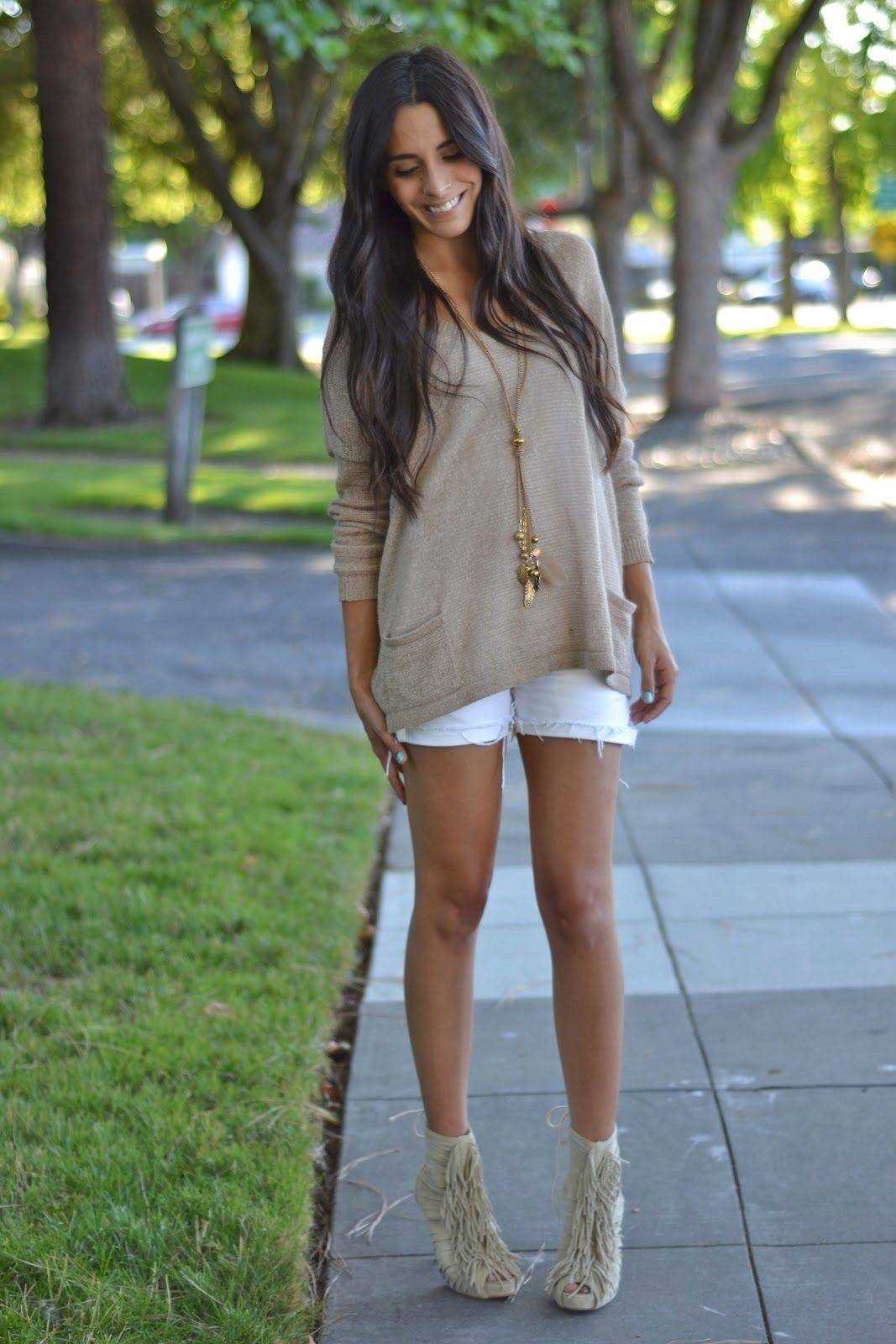 Для приятных летних прогулок и походов по магазинам идеально подойдет сочетание шорт с джемпером свободной кроя. В таком наряде легко и комфортно. Примерьте не только классический джемпер, но и модели в стиле оверсайз. Под последние лучше одевать джинсовые шорты с завышенной талией.