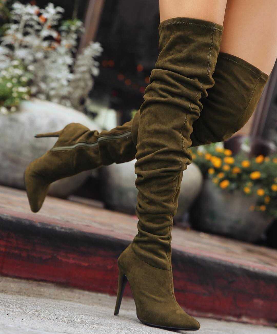 - Отличным союзником для зеленого платья станут приглушенные желтые, лиловые, золотые или бордовые сапоги.