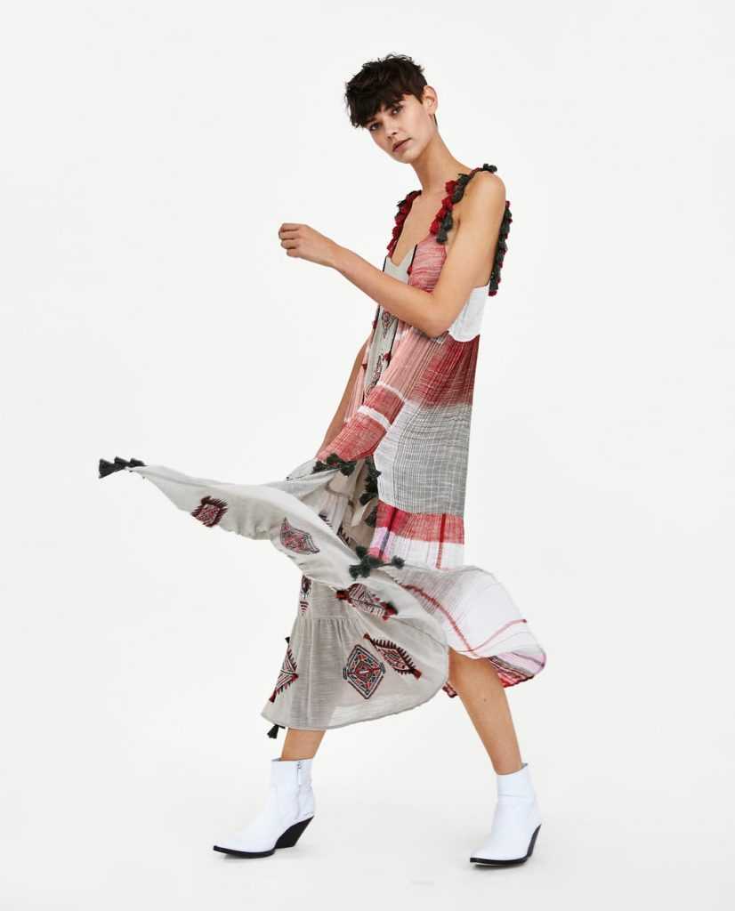 В теплое время года актуальными будут сандалии. Идеальным вариантом к длинному платью станут модели в этническом стиле с различными декоративными элементами (ремешками, шнуровкой и т. д.).