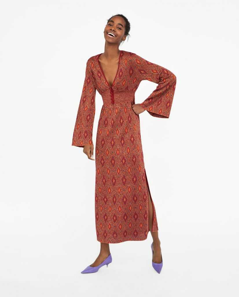 В холодное время года длинное платье можно удачно комбинировать с шарфом или платком.